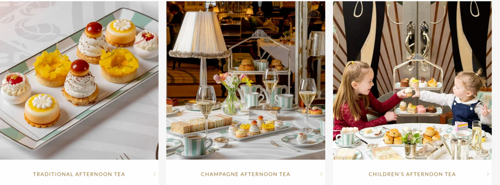 عندما يتعلق الأمر بشاي بعد الظهر، لا يمكن ذكره دون الإشارة إلى الاسم اللامع “ذا ريتز”. يقدم “ذا ريتز” شاي بعد الظهر منذ عام 1906، وقد أصبح معروفًا عالميًا كواحد من أفضل وأشهر شاي بعد الظهر. يُقدَّم الشاي في الأجواء الرائعة لقاعة “ذا بالم كورت